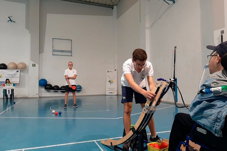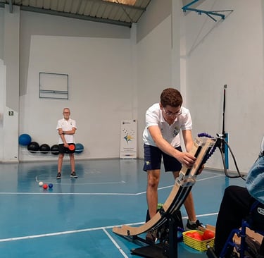 La Boccia es un deporte específico practicado por personas en silla de ruedas que tienen parálisis cerebral, lesión cerebral adquirida o discapacidad física severa.